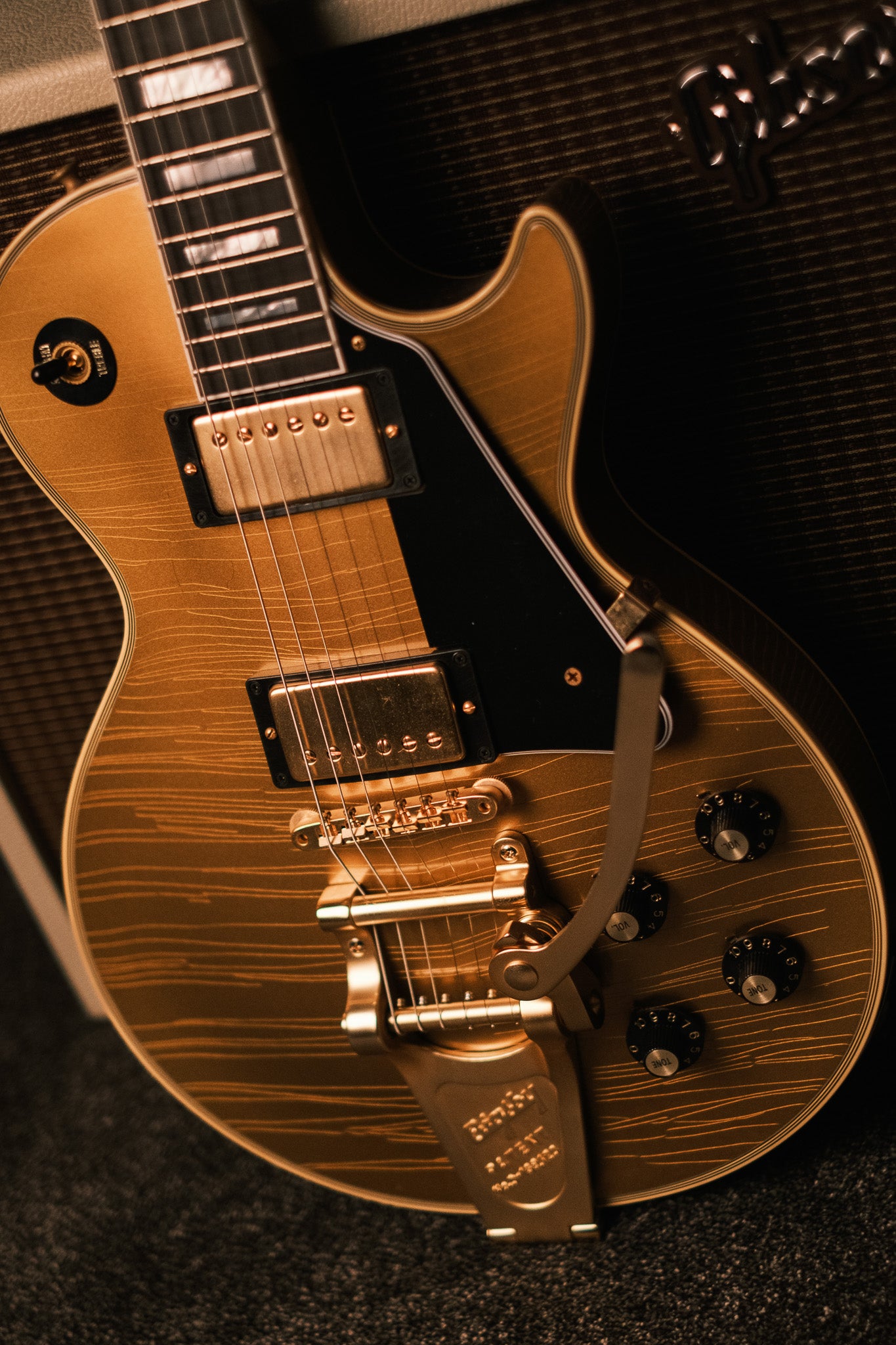 The Greatest Hits Collection Gibson Custom 1968 Les Paul Custom showcases timeless elegance with its gilded maple cap and matching gold body finish—a stunning interpretation of the "Custom" legacy. Featuring an authentic '68 medium C mahogany neck profile and an ornate ebony fingerboard with intricate inlays, this instrument captures the character of a vintage treasure. The Murphy Lab Ultra Light Aged finish delivers that coveted played-in aesthetic without compromising structural integrity. Whether you're a collector seeking investment-grade craftsmanship or a performer demanding vintage tone and visual presence, this Les Paul Custom bridges heritage and playability. Each detail reflects Gibson's commitment to recreating the golden era of electric guitar design. A statement piece for those who refuse to compromise on authenticity or sound.